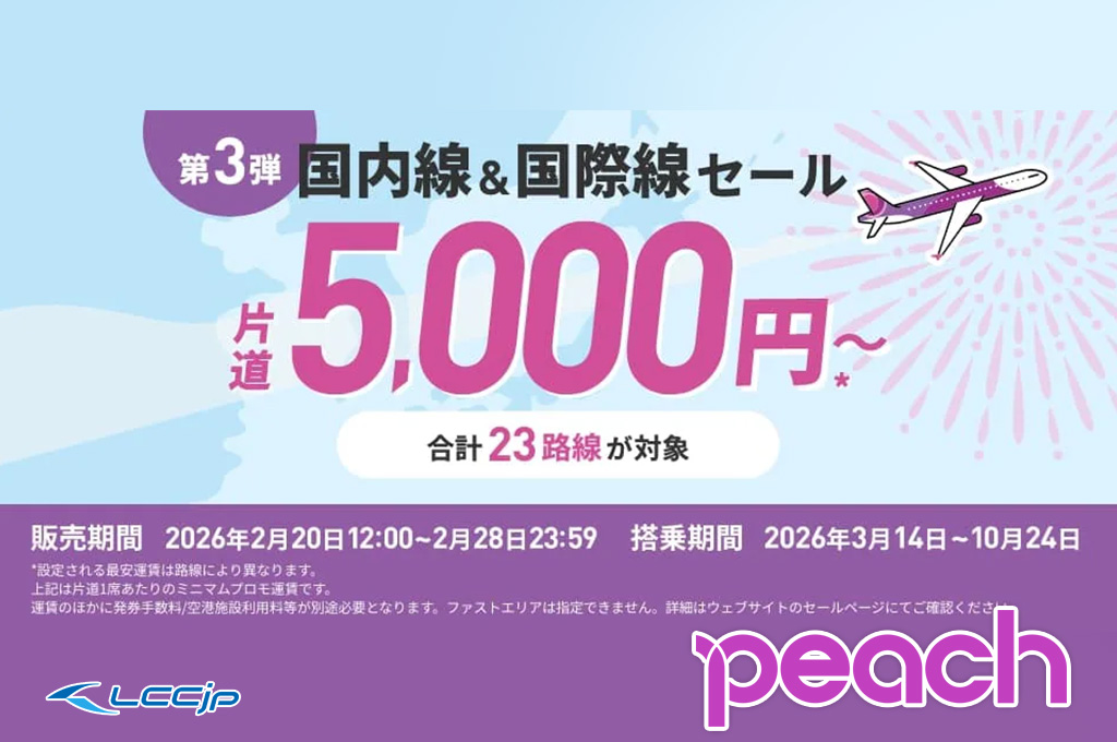 Peach、「旅フェス 第3弾」2月20日12時からセール開催!国内線&国際線 片道5,000円から